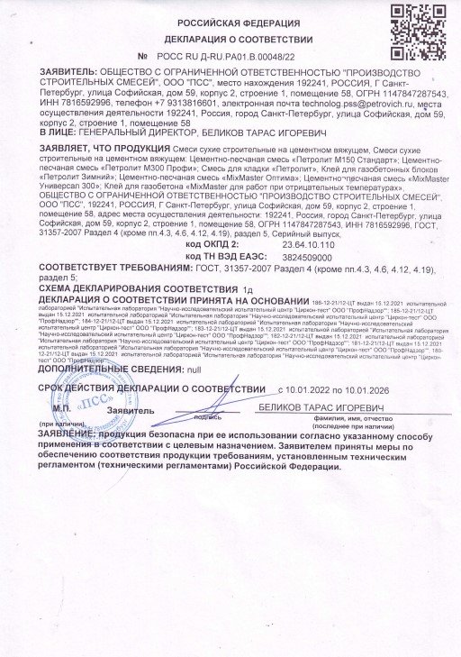 Купил кладочную смесь для кирпичной кладки. Доставили вовремя, всё в порядке. Смесь хорошо размешивается и быстро схватывается работа шла без замедлений.